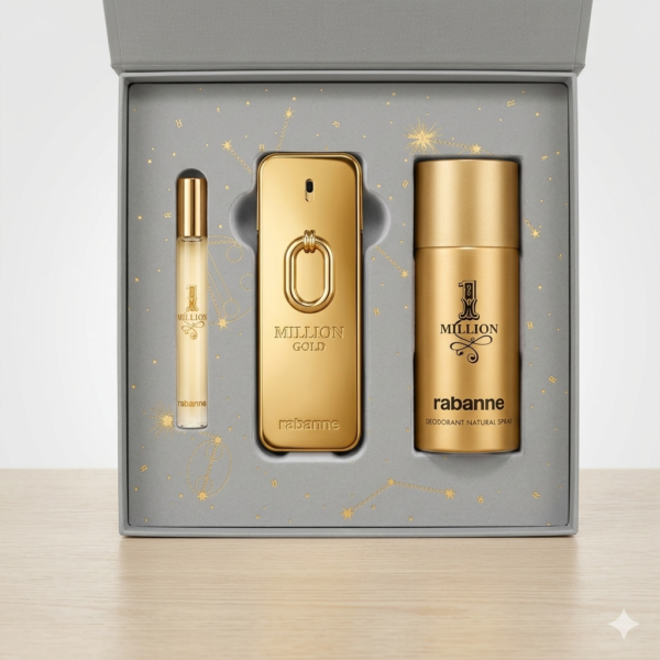 Coffret Cadeau Paco Rabanne 1 Million For Men – Eau de Toilette 100ml, Déodorant et Spray de Voyage – Édition Luxe Céleste